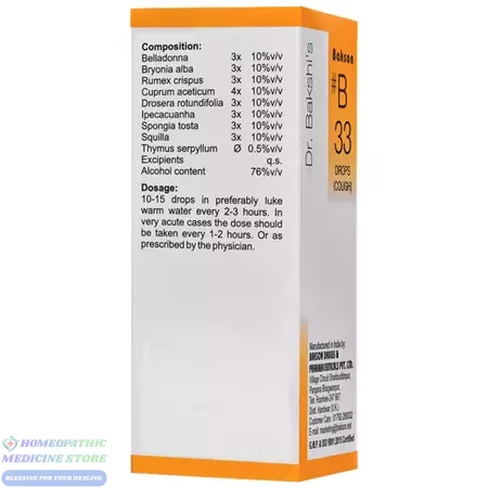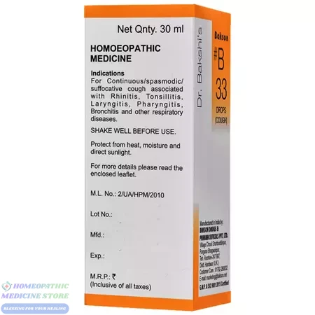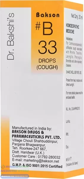 Bakson B33 Cough Drop is a homeopathic formulation designed to provide relief from dry, spasmodic and productive cough. It helps soothe throat irritation, reduce chest congestion and speed recovery from cough caused by cold, infection, allergy or weather change. Gentle and effective for all age groups.