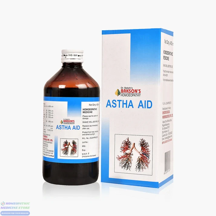 Bakson’s Homeopathy Astha Aid Syrup is a well-formulated respiratory care syrup that helps manage the symptoms of asthma, bronchitis, allergic cough, breathlessness, chest congestion and wheezing. It aids easier breathing by reducing bronchial irritation, loosening mucus and calming respiratory spasms. Ideal for individuals who suffer from seasonal allergies, chronic cough or frequent breathing difficulties, this syrup provides gentle and effective relief with natural homeopathic ingredients.