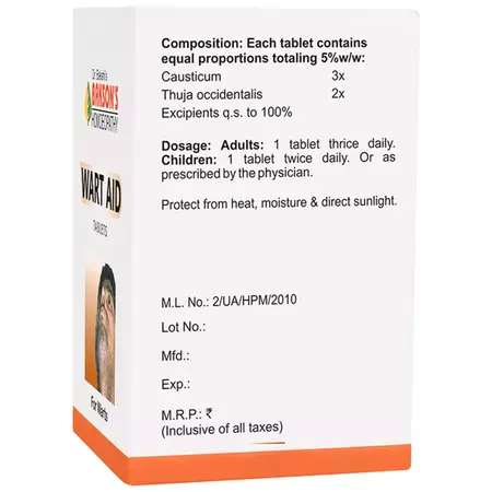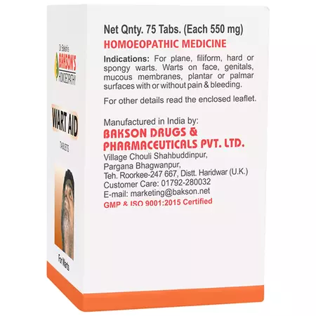 Bakson’s Wart Aid Tablet is a potent homeopathic medicine for warts which could be plane, filiform, hard, or spongy warts; on the face, genitals, mucous membranes, plantar or palmar surfaces, with or without pain and bleeding.