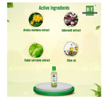 Olive Oil, Arnica Montana Extract, Jaborandi Extract, Sabal Serrulata Extract, Light Liquid Paraffin, Butylated Hydroxy Toluene, Caprylic Capric Triglyceride, Coconut Oil, Sesame Oil