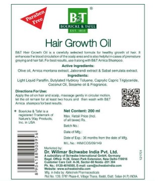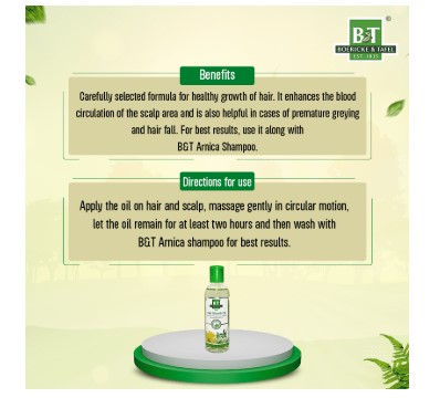 Boericke and Tafel Hair Growth Oil is a carefully selected formula for healthy growth of hair. It may help maintain the blood circulation of the scalp area and can help in cases of premature greying and hair fall. For best results, it is advised to use it along with Arnica Shampoo.