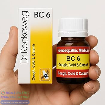 Dr. Reckeweg Bio-Combination 6 (BC 6) Tablets is a homeopathic remedy designed to provide relief from cough, cold, chest congestion, mucus accumulation and breathing problems. It helps soothe irritation in the respiratory tract and promotes easy elimination by balancing the body’s essential salts.