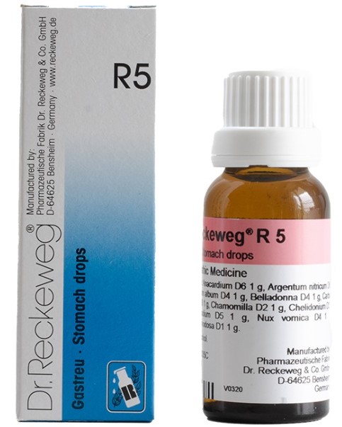 Dr. Reckeweg R5 Stomach and Digestion Drop / For Stomach Care is a homoeopathic drop, useful for acute and chronic gastritis, heartburn, flatulence and belching. It helps relieve gastrointestinal disorders and improves digestive health.