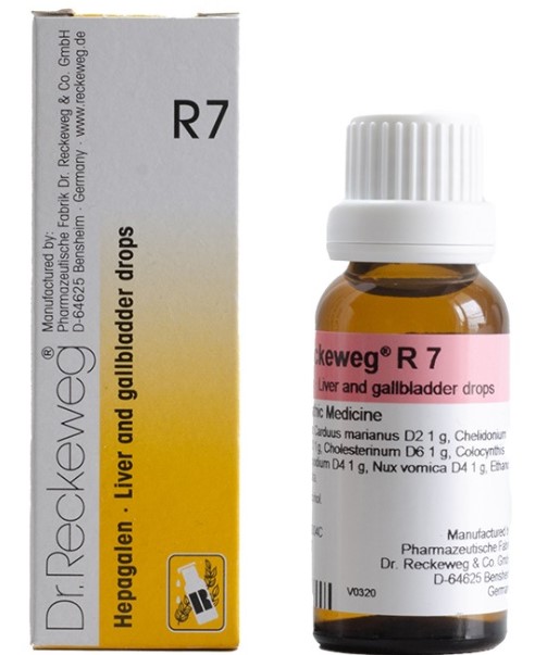 Dr. Reckeweg R7 Liver and Gallbladder Drop / For Liver Care is a homoeopathic medicine that relieves liver ailments and disturbances of biliary secretion. It helps improve lack of appetite, weariness after meals and premature satiety.