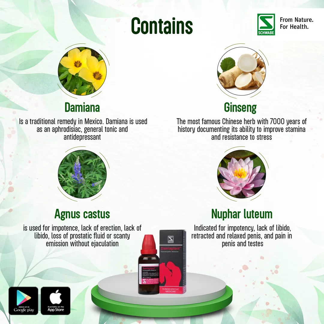 Damiaplant—a combination of 5 well-known homoeopathic remedies that naturally: