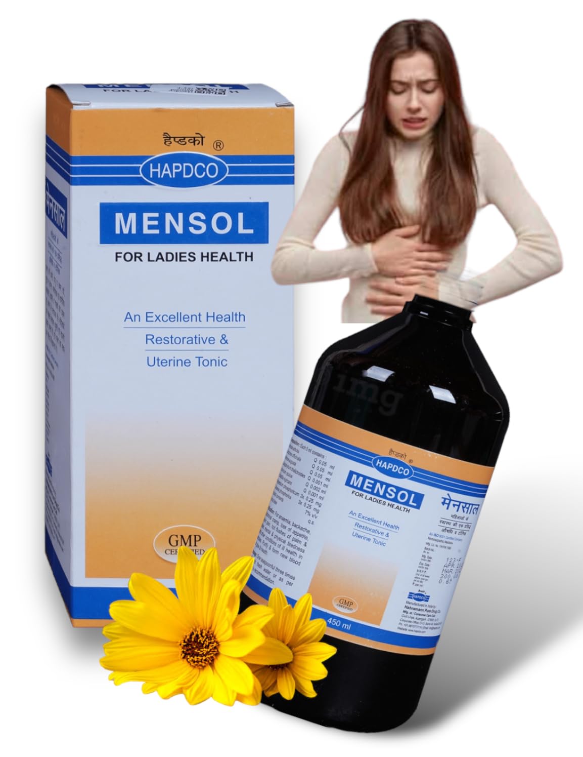 Hapdco Mensol Tonic is a healthy restorative tonic for women that can help regulate the menstrual cycle, and reduce headache, backache, and weakness.