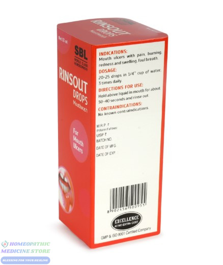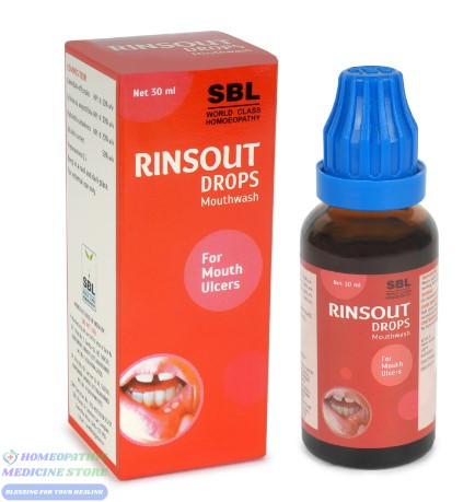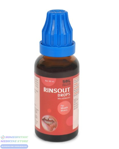 SBL Rinsout Drops Mouthwash helps in relieving painful mouth ulcers and gum discomfort. Mouth ulcers, medically known as aphthous stomatitis, are small, shallow sores that can appear on the cheeks, gums, tongue, lips, or the roof and floor of the mouth. These ulcers often cause significant pain, making eating, drinking, and talking uncomfortable.