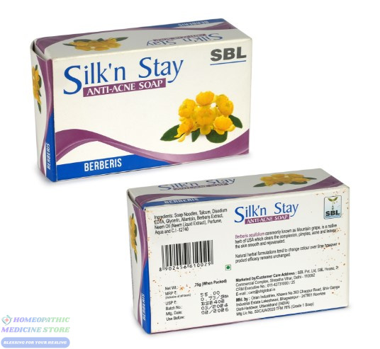 SBL Silk N Stay Berberis Soap has anti-ageing properties. The soap helps in improving complexion, removes pimples and acne.