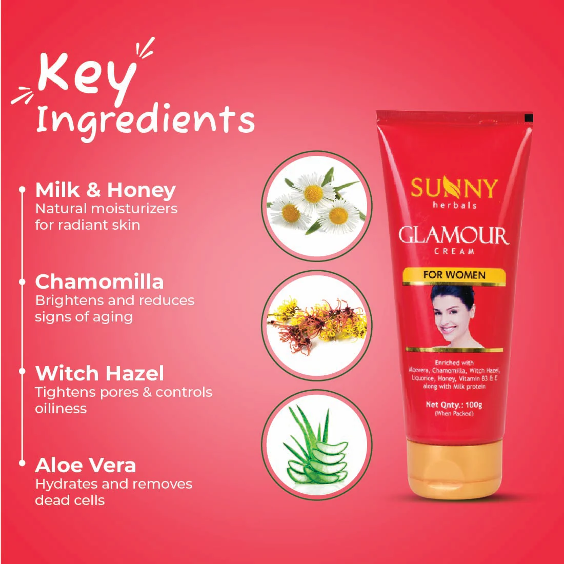 A lightweight, brightening face cream from Sunny Herbals, specially formulated for women. It combines natural herbal and botanical extracts to hydrate, even skin tone, soften texture, and reveal a youthful glow with regular use