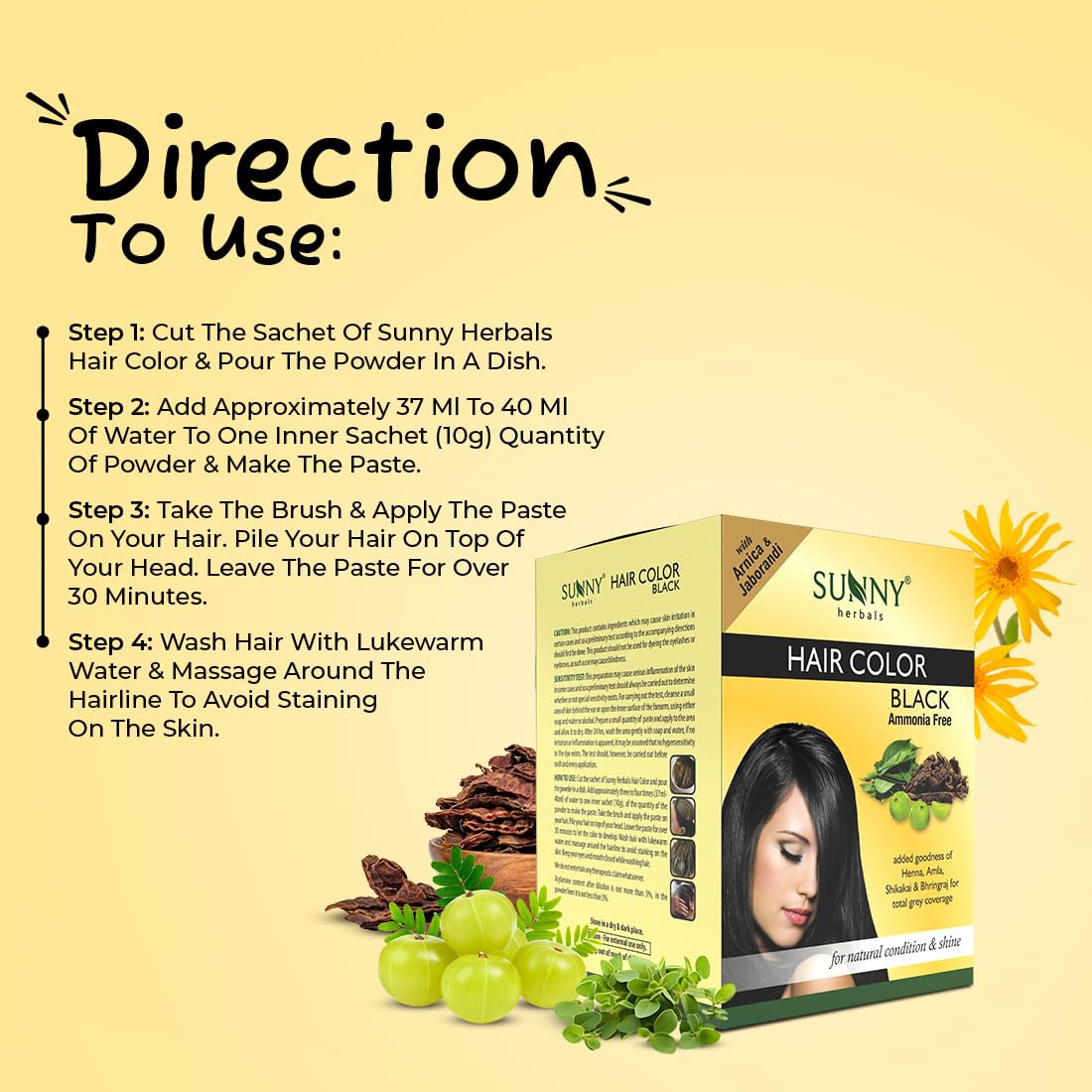 - Sunny Herbals hair colour also contains Arnica and Jaborandi that support hair health